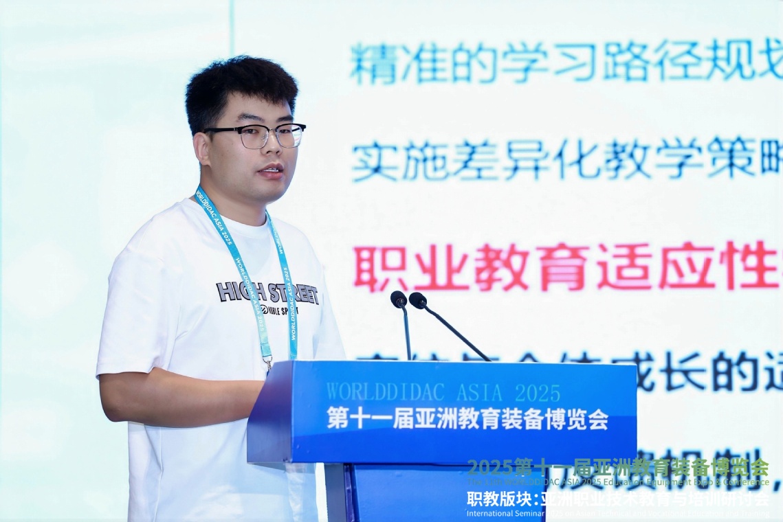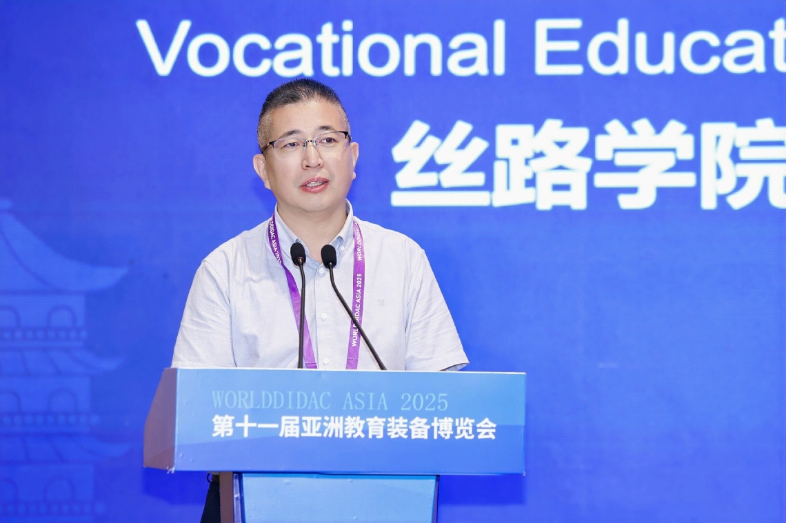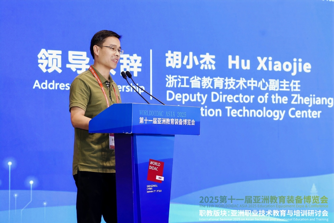 2025年9月17日至19日,由世界教具联合会与中国教育装备行业协会共同主办的“第十一届亚洲教育装备博览会”在杭州大会展中心隆重举行。作为博览会的重要组成部分,由我院主办,浙江天煌科技实业有限公司与浙江格创教育科技有限公司课程研究所联合承办,台州技师学院协办的职教版块平行论坛——“丝路学院产教融合暨智慧职业教育发展学术研讨会”于9月18日成功召开。浙江省教育技术中心副主任胡小杰莅会致辞,浙江师范大学非洲研究院、《中国职业技术教育》杂志以及《中国教育报(职教周刊)》为论坛提供学术支持。