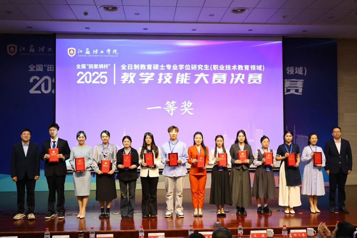 2025 年 10 月 26 日至 27 日,全国 “田家炳杯” 全日制教育硕士专业学位研究生(职业技术教育领域)教学技能大赛决赛在江苏理工学院圆满落幕。我院学子荣获一等奖2项、三等奖5项,获奖等级与数量位居全国参赛院校前列。